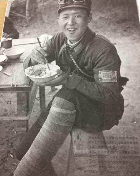 正在用餐的八路军战士,食物十分简单,但对他来说却十分满足。