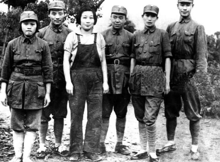 图为出席新四军第一次党代会的东南局代表,分别为新四军后方政治部组织科科长袁国平夫人邱一涵、东南局妇委负责人章蕴、东南局妇委书记李坚贞、东南局副书记、中共中央军委新四军分会委员曾山。
