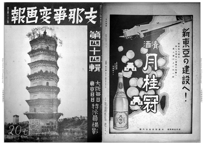 《支那事变画报》译为《中国事变画报》,创刊于日本昭和12年8月3日(1937年8月3日)。创刊号封面上印有“陆军省许可、支那驻屯军司令部许可和发行所大坂每日新闻社、东京日日新闻社”字样,2—100辑封面上均标明为“大坂每日、东京日日特派员摄影”。《支那事变画报》临时增刊为周刊朝日,发行所为大坂、东京朝日新闻社。《支那事变画报》在日本国内印刷后运到中国发行。