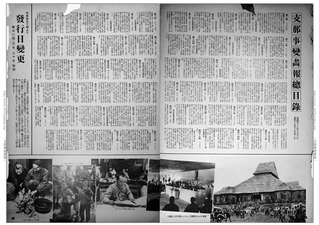 《支那事变画报》前三辑名为《北支事变画报》,从第四辑起改名为《支那事变画报》,至第101辑止。《支那事变画报》中文章及照片介绍均为日文。