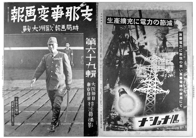 《支那事变画报》译为《中国事变画报》,创刊于日本昭和12年8月3日(1937年8月3日)。创刊号封面上印有“陆军省许可、支那驻屯军司令部许可和发行所大坂每日新闻社、东京日日新闻社”字样,2—100辑封面上均标明为“大坂每日、东京日日特派员摄影”。《支那事变画报》临时增刊为周刊朝日,发行所为大坂、东京朝日新闻社。《支那事变画报》在日本国内印刷后运到中国发行。