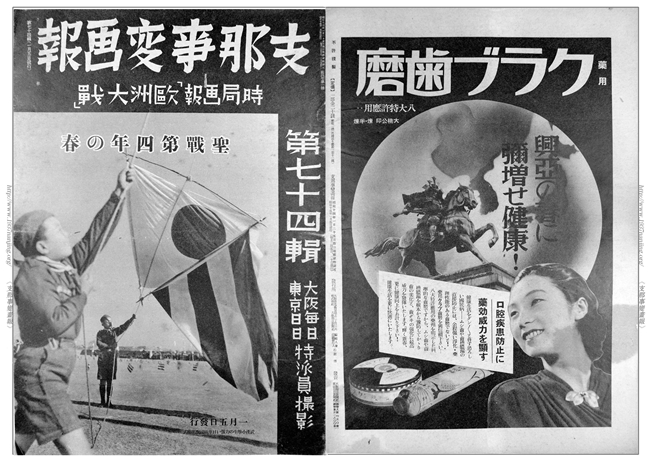 《支那事变画报》译为《中国事变画报》,创刊于日本昭和12年8月3日(1937年8月3日)。创刊号封面上印有“陆军省许可、支那驻屯军司令部许可和发行所大坂每日新闻社、东京日日新闻社”字样,2—100辑封面上均标明为“大坂每日、东京日日特派员摄影”。《支那事变画报》临时增刊为周刊朝日,发行所为大坂、东京朝日新闻社。《支那事变画报》在日本国内印刷后运到中国发行。