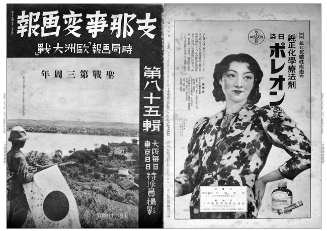 《支那事变画报》译为《中国事变画报》,创刊于日本昭和12年8月3日(1937年8月3日)。创刊号封面上印有“陆军省许可、支那驻屯军司令部许可和发行所大坂每日新闻社、东京日日新闻社”字样,2—100辑封面上均标明为“大坂每日、东京日日特派员摄影”。《支那事变画报》临时增刊为周刊朝日,发行所为大坂、东京朝日新闻社。《支那事变画报》在日本国内印刷后运到中国发行。