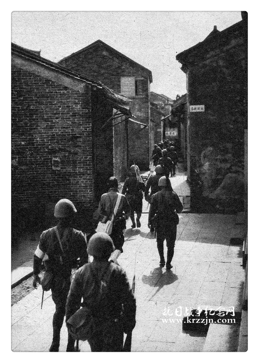 1938年11月,广东番禺石楼乡内扫荡的日军陆战队。