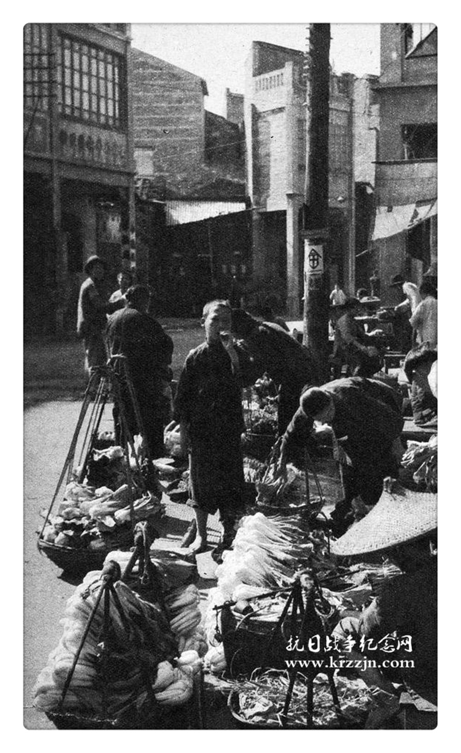 1938年11月,广东佛山,卖咸鱼的店铺。