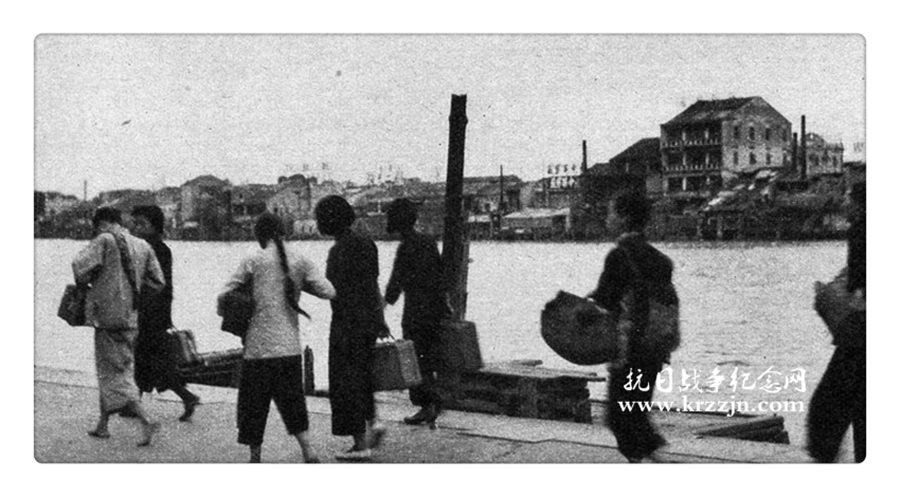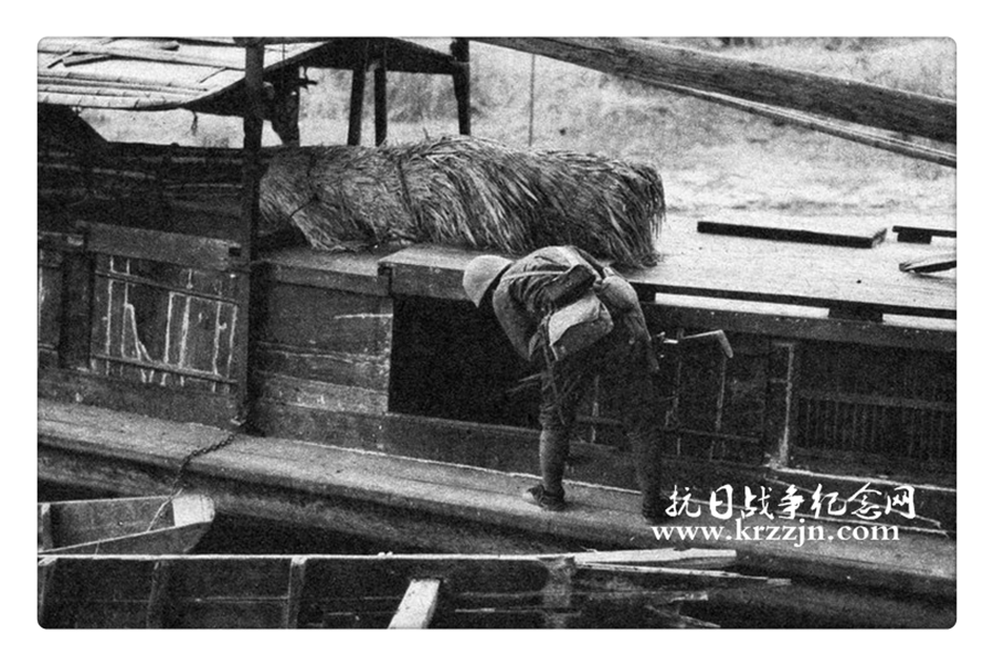 1938年11月,珠江的船只上,被日军俘虏的中国军队士兵。