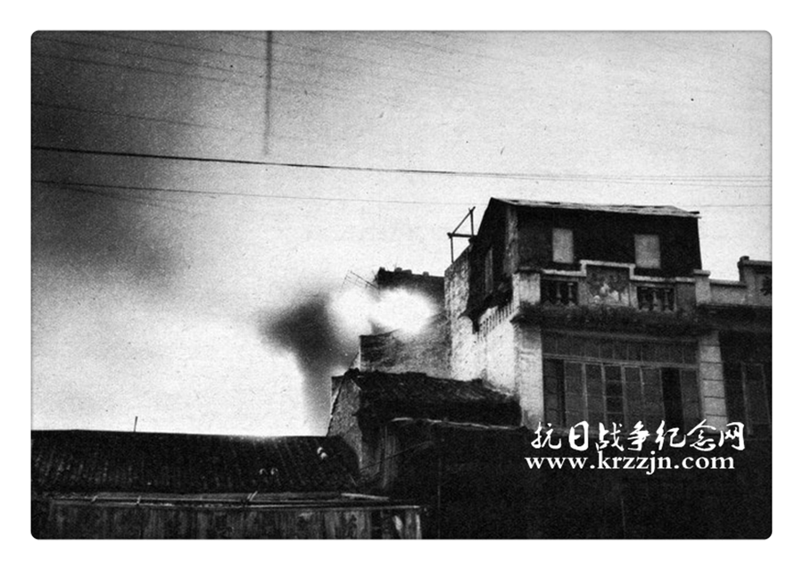 1938年11月,广州市内,被日军纵火焚烧的楼房。