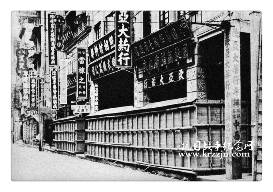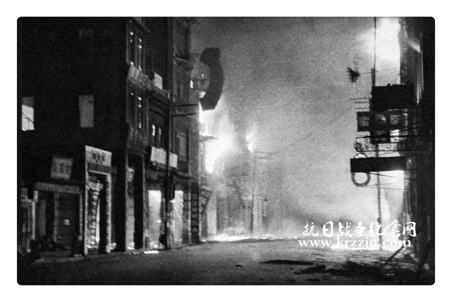 1938年11月,广州汉民路(现北京路),被日军纵火焚烧的楼房。
