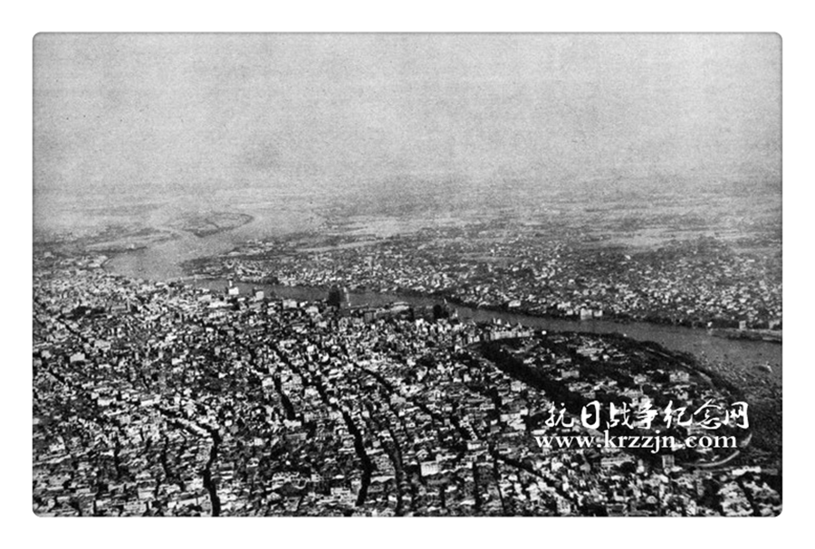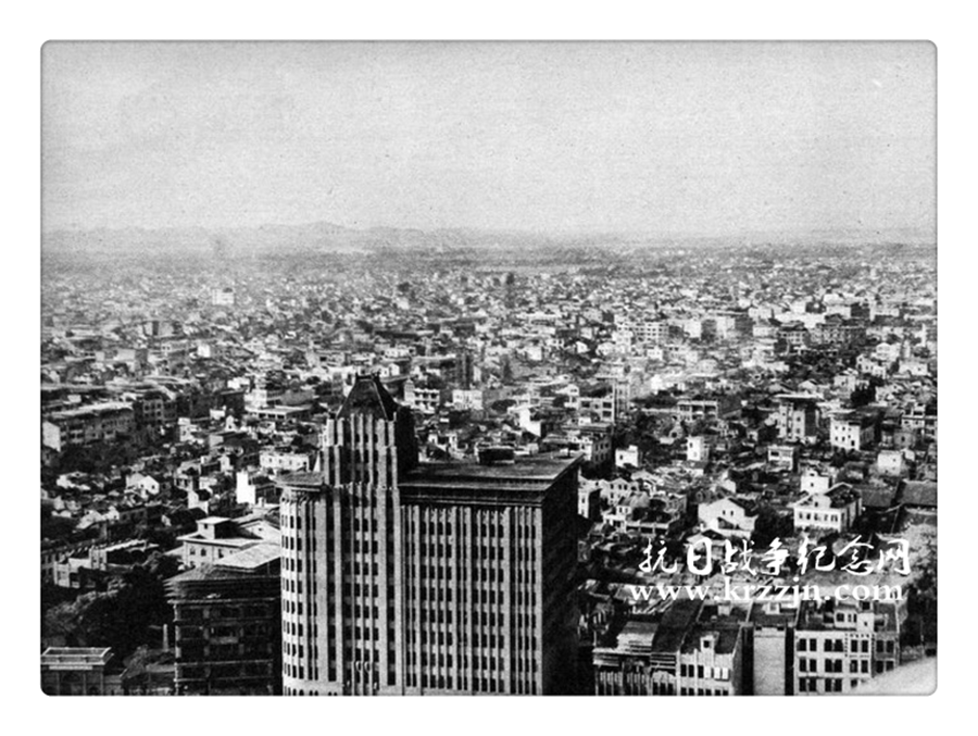 1938年11月,广州市区建筑群俯瞰,前景为爱群大厦。