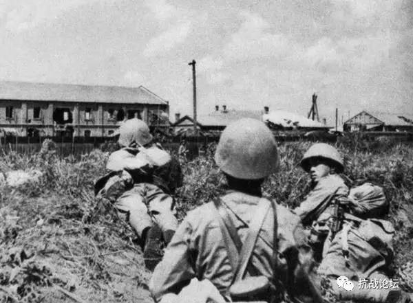 1937年8月23日,从长江登陆后的日军部队朝民居射击。