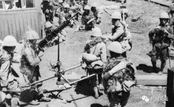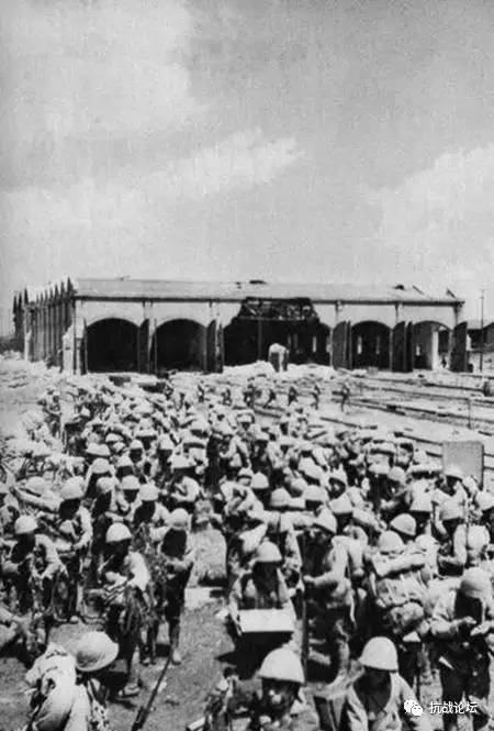 1937年8月23日,从长江登陆后的日军部队,抬着高射机枪的士兵