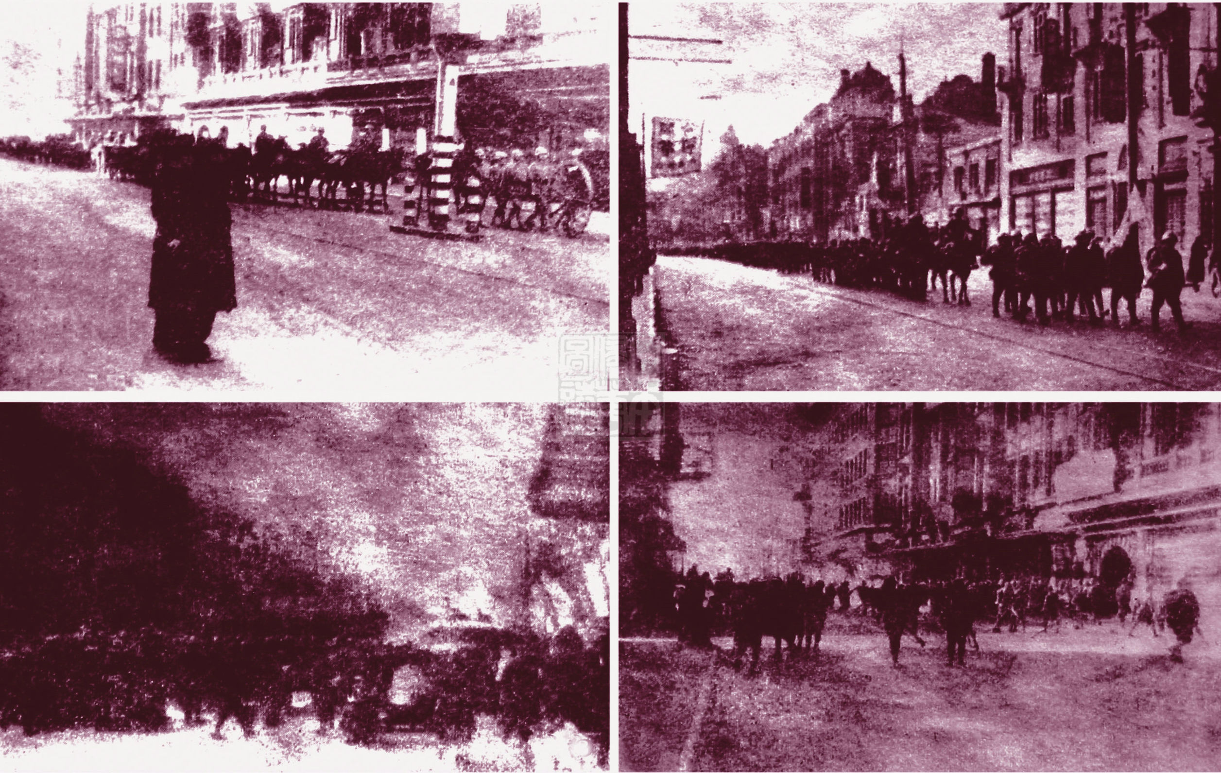 《不许可写真(1)》中反映当时南京路手榴弹爆炸后日军警戒的照片。