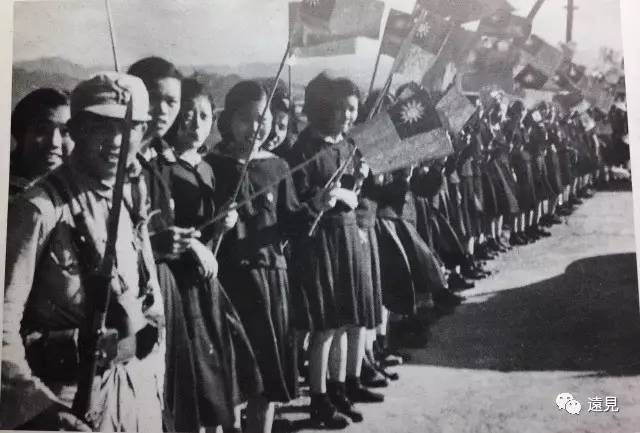 1945年台湾省台学生列队欢迎国军来台摄影:邓秀碧
