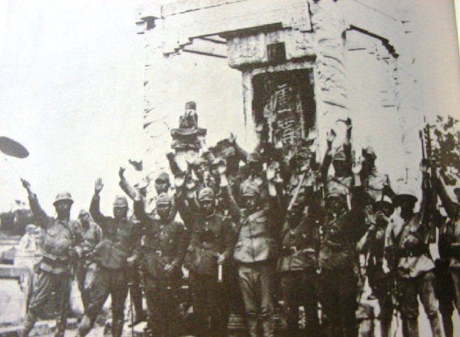 图为日军在卢沟晓月碑前庆祝胜利。(资料图)