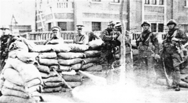 图2为卢沟桥事变后,日本侵略者马上就把进攻的矛头对准了天津。在中国共产党抗日民族统一战线政策的感召和天津人民的倾力支援下,1937年7月28日,驻守在天津的国民党第二十九军三十八师奋起迎击日本侵略者,给日军以沉重打击。图为该部官兵战前在天津城区就地利用地形构筑工事。