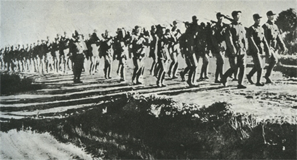 一九三七年秋,八路军部队日夜兼程向华北抗日前线挺进。