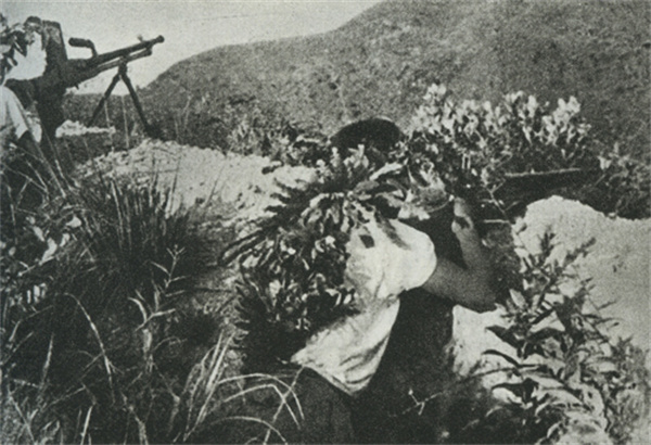 八路军一二九师在狮脑山战斗中的重机枪阵地。