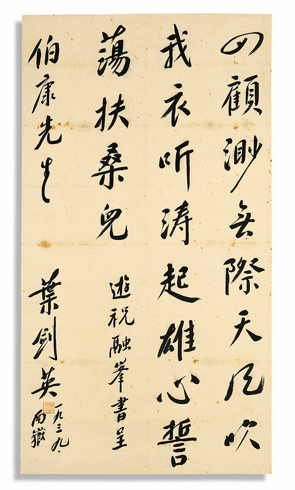 1939年叶剑英赠给在南岳游干班任教的陈伯康的亲笔题诗
