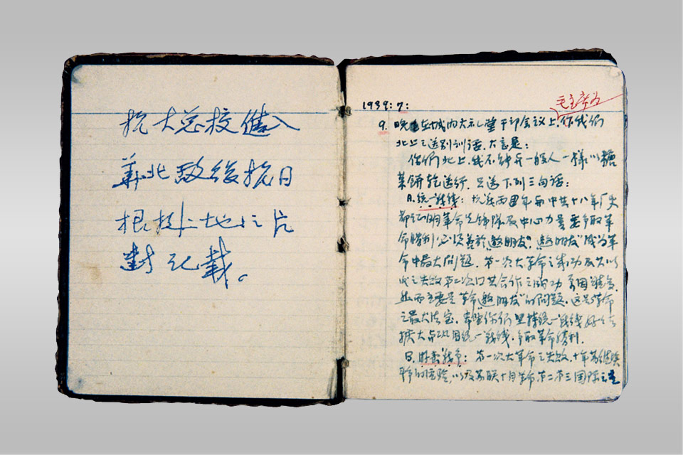 这本日记写于1939 年7 月至1945年4月,记录了抗大总校向太行山根据地转移的经过和到达根据地后的工作生活片段。张际春(1900-1968),湖南宜章人。1938 年任抗日军政大学政治部主任和党务委员会书记。1939 年7月,“抗大”总校奉命从延安迁移到太行山地区,以训练前线八路军干部。张际春与罗瑞卿率领机关和学院数千人,穿过数道敌人封锁线,于1940 年1月到达太行山根据地。