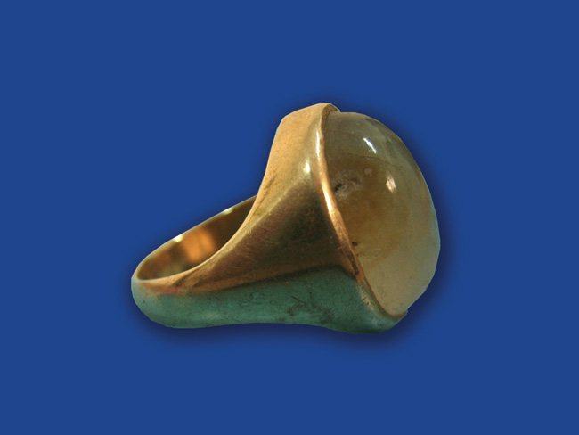 一·二八淞沪抗战期间,归国华侨崔某受人之托来到第19路军60师后方办事处,拿出一枚中间镶嵌椭圆形宝石的金戒指,恳请办事处工作人员转交蒋总指挥。此戒指戒面所用石材为“化险石”,希望蒋光鼐能化险为夷,表达华侨的敬意与祝福。