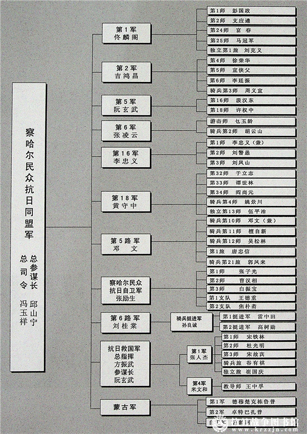 察 哈 尔 民 众 抗 日 同 盟 军 作 战 序 列