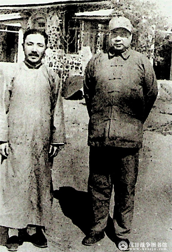 察哈尔民众抗日同盟军总司令冯玉祥(右)与前敌总司令方振武(左)合影。