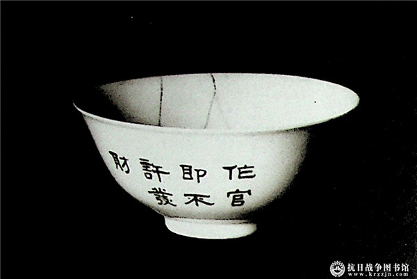 吉鸿昌用的碗上烧制着他父亲的遗训:“作官即不许发财”。