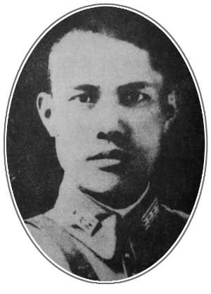 1944年11月10日,夜间,他随 韦云淞率部队向城西突围,在猴山坳遭日军阻击,受伤倒地?为了不增加部队行动负担和免于被俘受辱,他掏出名片,摸黑写上“战受重伤,不能脱离险地,决定自 杀成仁,以免受辱”等语,并郑重地沾上伤口的鲜血按上指印,将名片和怀表一并交给卫士,然后举枪殉国,终年51岁?