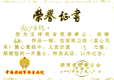 2005年首届中国文艺“金爵奖”活动中,被中国文艺协会评定为“书画最佳奖”最高奖)。
