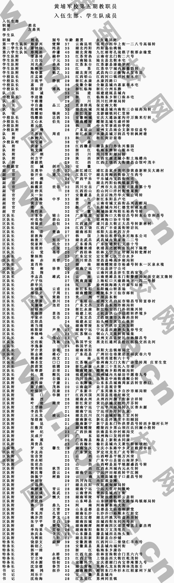黄埔本校第五期入伍生部、学生队成员姓名籍贯表