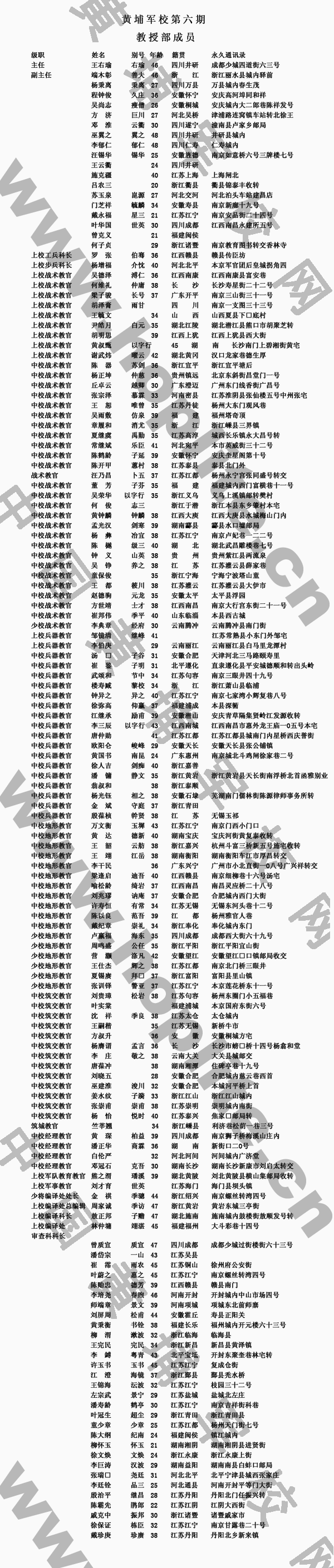 黄埔与南京本校第六期教授部成员籍贯表