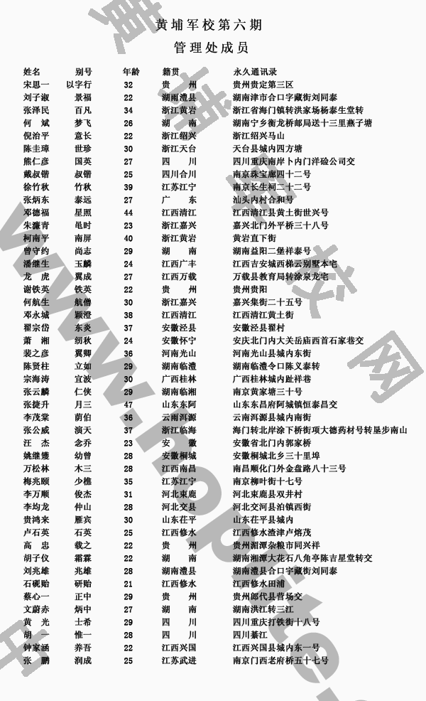 黄埔与南京本校第六期管理处成员籍贯表