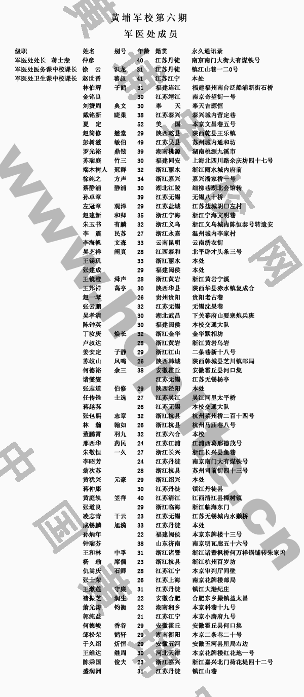 黄埔与南京本校第六期军医处成员籍贯表