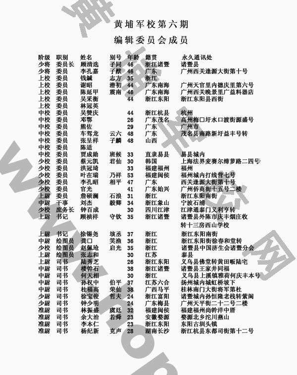 黄埔与南京本校第六期编辑委员会成员籍贯表