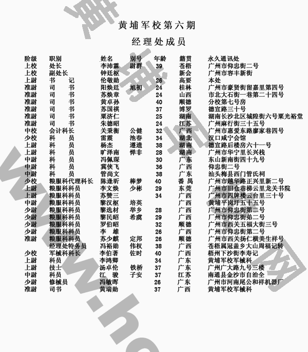 黄埔与南京本校第六期经理处成员籍贯表