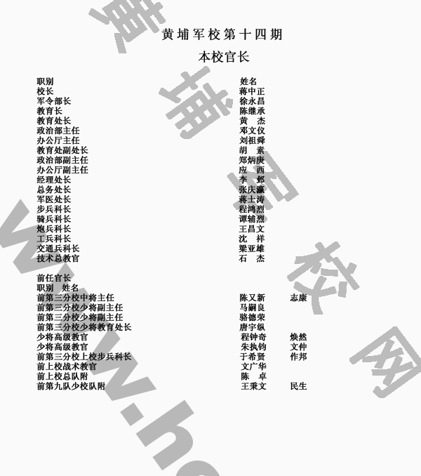 南京本校第十四期第六总队本校官长姓名籍贯表