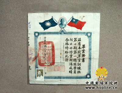 2007年11月8日,中国黄埔军校网及黄埔军校博物馆收藏黄埔军官训练班十期胡云杰毕业证书。