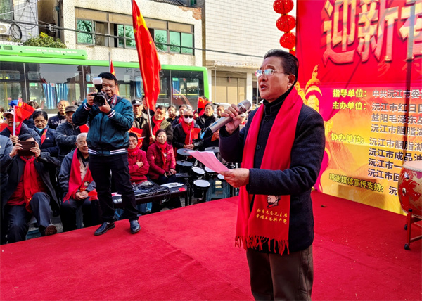 元旦前夕,冬日暖阳洒满湖南省沅江市三眼塘镇十里坪村的每一个角落,崭新的三眼塘书院内彩旗飘扬、人声鼎沸。一场以“缅怀伟大领袖 传承红色基因 助推乡村振兴 迎新春送春联”为主题的群众文艺汇演在此隆重举行,千余名干部群众齐聚一堂,用笔墨传情、用歌舞抒怀,向毛泽东同志诞辰132周年致以深切缅怀,向中国共产党、向新时代献上最诚挚的颂歌。