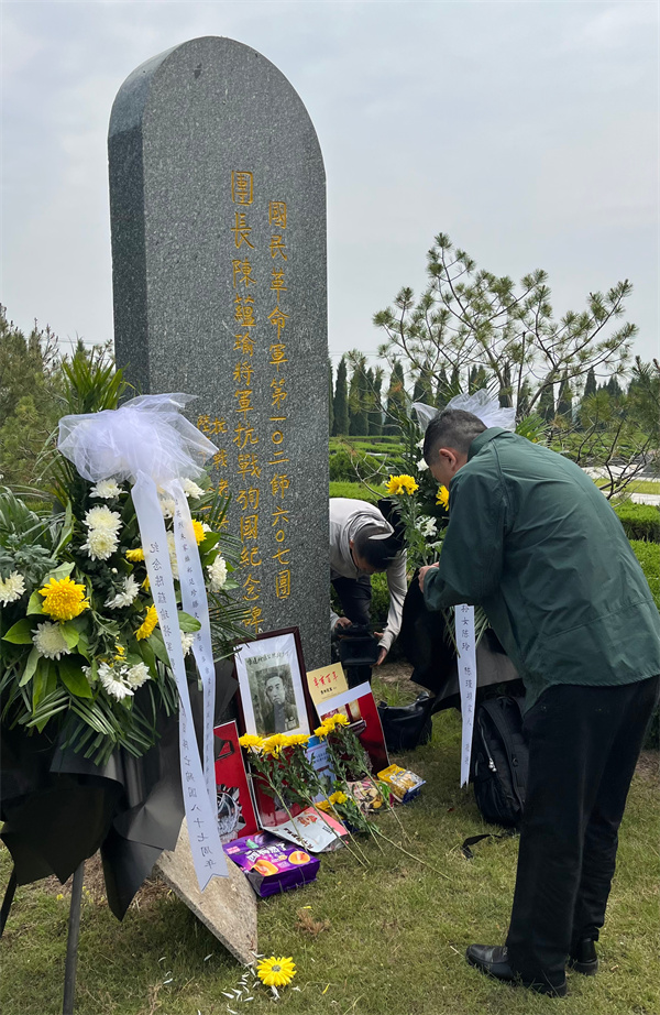 作者在郝柏村将军题写的陈蕴瑜将军殉国纪念碑前祭拜。