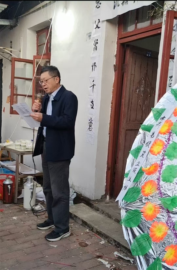 作者在抗战老兵易克林先生的遗体告别仪式上致辞。
