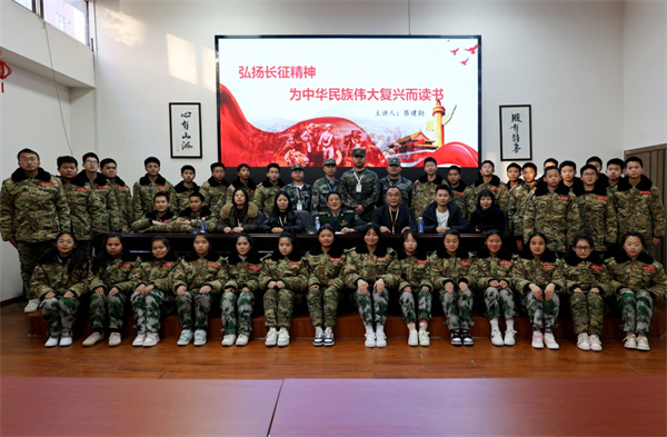 2026年1月中旬,长沙楚现军举集团国防素质教育基地内展板林立、氛围肃穆热烈。值此中国工农红军长征胜利90周年之际,为响应《人民日报》元旦献辞中“传承长征精神、推进民族复兴”的时代号召,基地特邀长征历史研究专家、国防科技大学原某院大校蔡建勋,为全体初、高中学生带来《弘扬长征精神,为中华民族伟大复兴而读书》专题宣讲,并同步举办《汲取奋进力量,续写时代华章》红色主题摄影展。两场活动相互呼应、深度融合,为青少年们送上了一堂浸润心灵的红色教育盛宴。