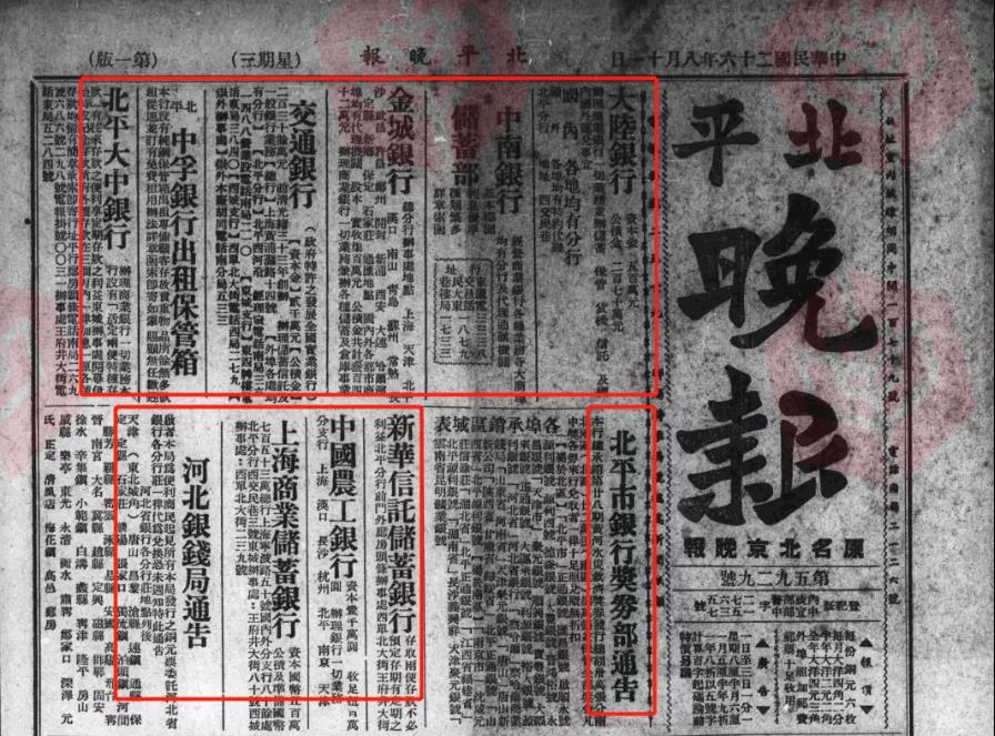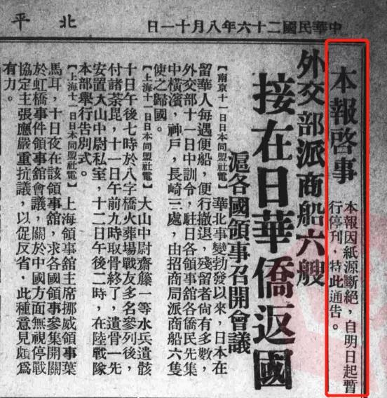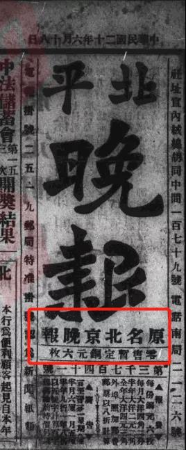 北伐后,《北京晚报》迫于国民党政府压力更名为《北平晚报》。1937年8月11日《北平晚报》,在第2版刊出“启事”:“本报因纸源断绝,自明日起暂行停刊。