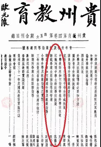 谌茀永:《抗战期间中学生的就学与就业》,出自平台收录的《贵州教育》第4卷第4、5、6期合刊。