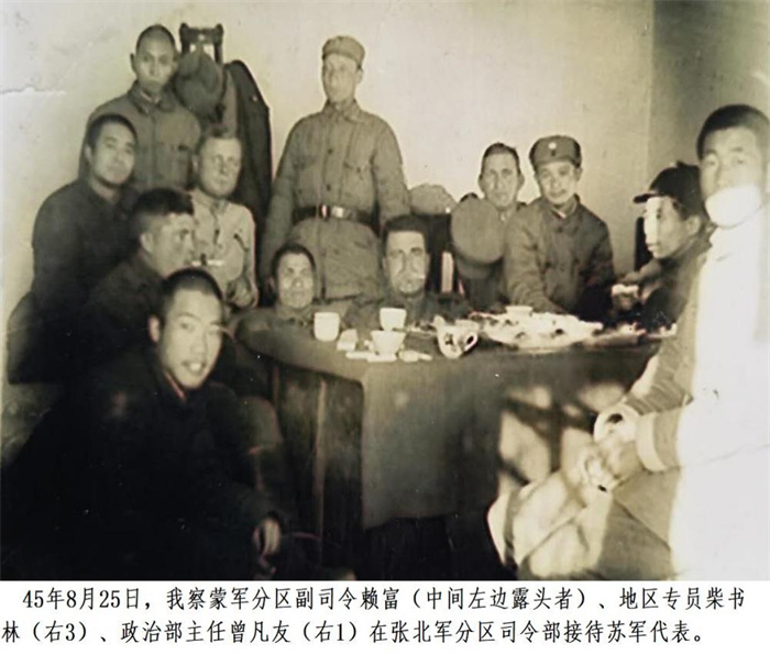 8月25日上午,苏军派库兹涅佐夫上校驱车从张北来到张家口,向我军表示祝贺,段苏权在伪蒙军司令李守信公馆接待了库氏,交谈中,段依照中央指示,向苏方通报敌情、我情,拟配合苏军火速南下,直取北平、天津、保定,并告知平绥路两侧都是根据地。库兹涅佐夫解释说,他们上级有规定,部队不能越过长城,段立即将这一重要情况报告军区,并把我涿鹿民兵救护的1名空投侦察员伊万诺夫交还给他。段苏权在桥西区北部大境门内侧俄侨聚集的上堡选了家俄式餐厅,宴请后举行了舞会,冀察军区参谋长易耀彩及杨春圃等人出席作陪,会场气氛热烈,库兹涅佐夫跳了两场舞,临别时挑了不少吃的、用的东西,汽车上堆得满满。他又提出要女人,段说八路军有三大纪律八项注意,这个事使不得,库氏才面露不快地走了。此后,每天都有三三两两的苏联军官,坐着老式美吉普到张家口来要酒要吃的东西,如鸡蛋、面包、白糖、奶酪、薯类、熏肉,多是早上来,傍晚回去,经常可以看到苏联军官与俄罗斯女郎一对一对轧马路。直至回国,联军部队都驻扎在万全坝以北张北县与康保县之间,炮兵阵地由公会镇以南狼尾巴山,推进到张北城外西河滩上,再也没有南进。