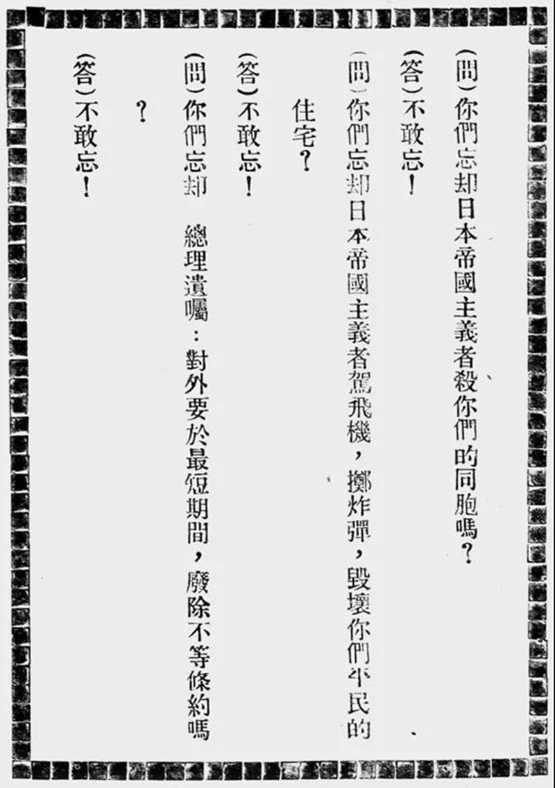 这一节作者所罗列的各项未必完全合乎事实,其叙述未必全面,判断也未必正确,但是这至少反映出了那一代许多中国人的内心想法。基于这一点,作者呼吁办理民众教育馆的同志,“利用乡农酬神演剧、朝山进香,或其他集会的时候,深入农村演讲团结御侮、挽救国难的方策,并拿古今中外可作模范的事实来证明。”