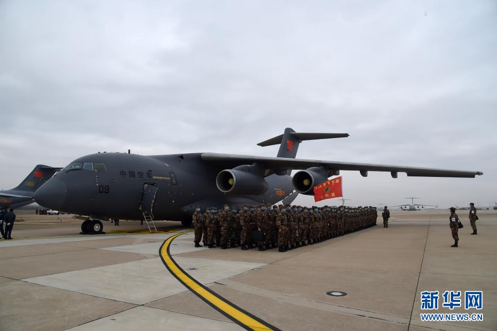 一批增援武汉的军队医护人员乘坐国产运-20运输机抵达武汉天河机场(2020年2月13日摄)。新华社记者 黎云 摄