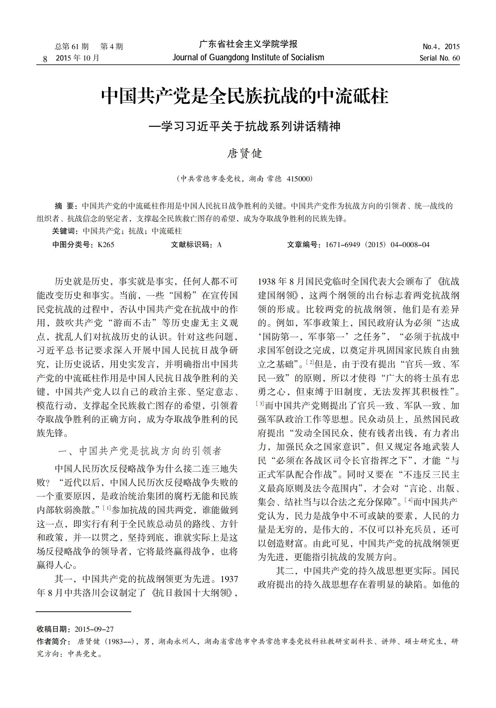 作者简介:唐贤健(1983--),男,湖南永州人,湖南省常德市中共常德市委党校科社教研室副科长、讲师、硕士研究生,研究方向:中共党史。