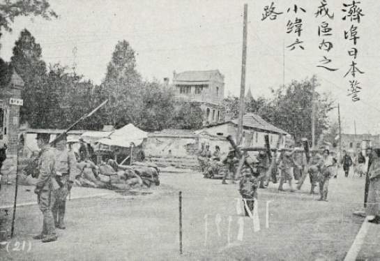 26 日日军进入济南并立即在济南城内设置警戒区,并构筑工事。4 月28 日,第六师团长福田向蒋介石递交了声明书,“谓胶济路与日侨之生命财产及日本之经济,均有关系,不许任何方面军队破坏云。”日方还强调,由于“日侨皆集济南商埠区内与正金银行及领馆、病院附近”,禁止中国军队进入商埠区。蒋介石相应下令第一集团军所部“暂勿入商埠区,及保护外人银行、领馆、病院,对于胶济路亦毋庸破坏,避免其藉词冲突”。