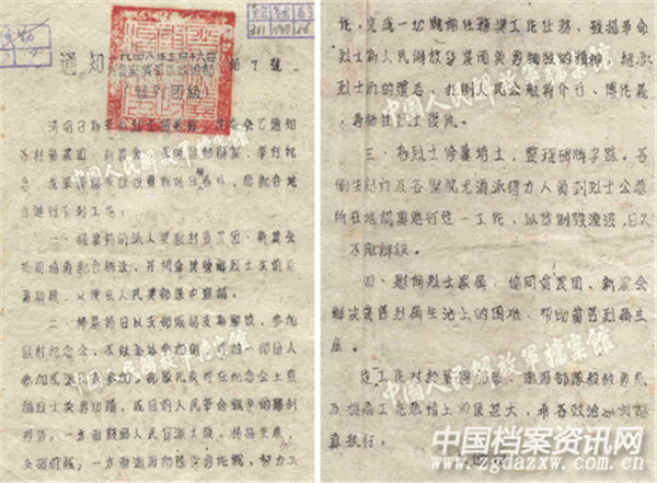 1948年3月7日,晋察冀边区行政委员会下发《关于清明节为烈士扫墓并举行纪念的通知》,内容如下: