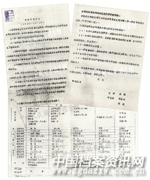 1934年10月7日至9日,中革军委主席朱德分别向正在前线作战的红三、红九、红一、红八军团下达撤离战场,把阵地交给地方武装,清点全部武器装备,开往于都河以北地域集结补充的命令。1934年10月9日、10日,中革军委先后发布《野战军由十月十日至二十日行动日程表》《关于第一野战纵队组成及集中计划的命令》,对红军各部和军委纵队、中央纵队的集结转移、休整补充做出具体周详的安排。随后,中央红军主力开始长征。这些档案充分表明在当时万分危急的情况下,红军没有惊慌失措,并且制订出周密的突围转移计划。同时,有力证明了红军是一支训练有素的军队,长征是一次有组织的战略转移。